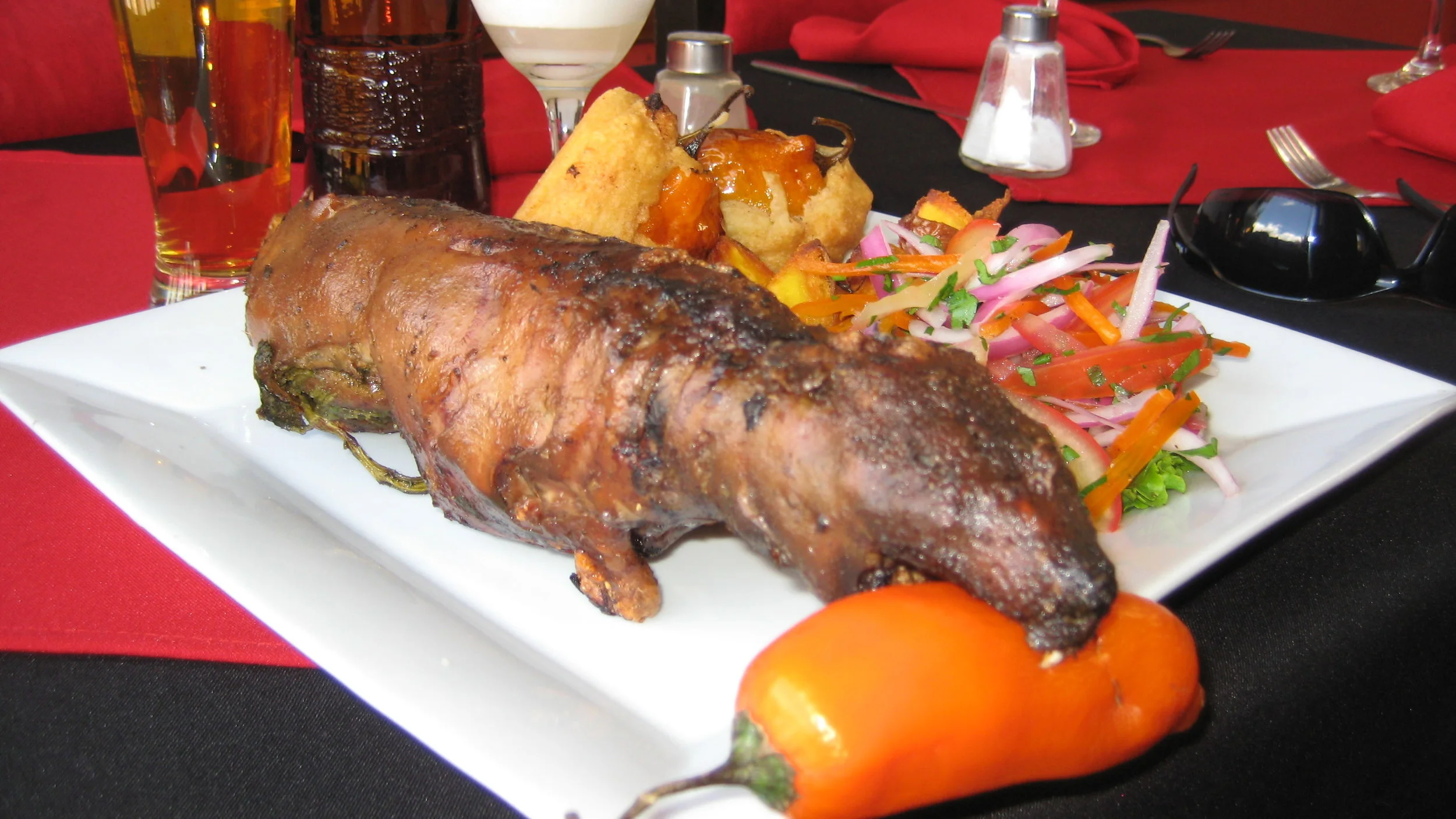 Cooked Guinea Pig. Can’t be any worse than killing any other animal I suppose!! Maybe vegetarian is on the books.